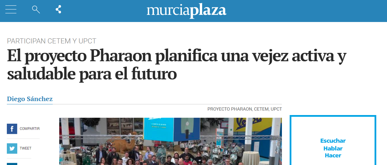 31 Jan El proyecto Pharaon planifica una vejez activa y saludable para el future (Murcia Plaza, ES)